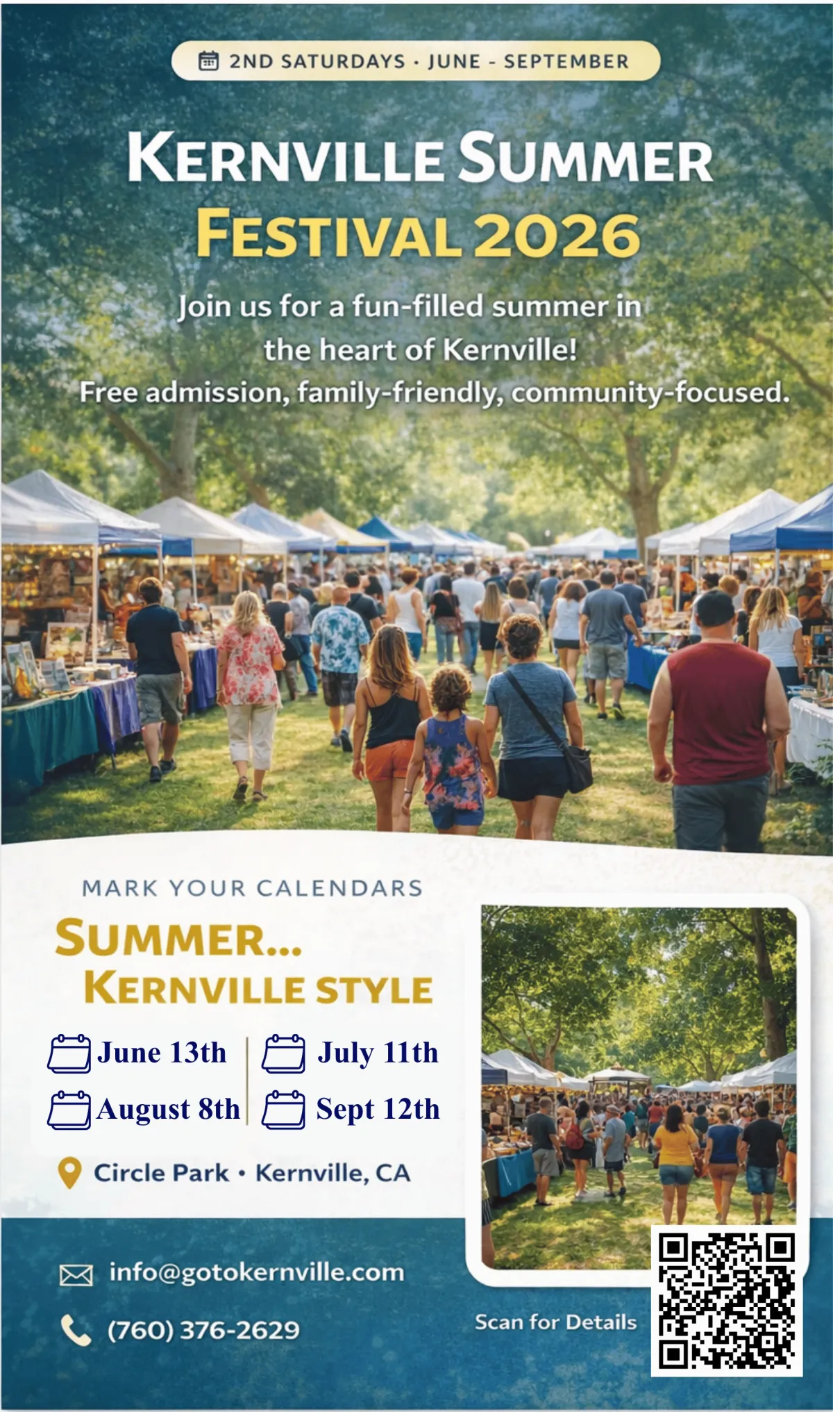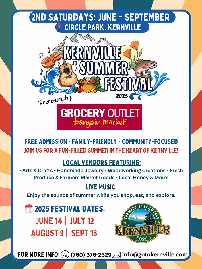 Celebrate summer in the heart of Kernville at our monthly Kernville Summer Festival, held the second Saturday of each month from June through September. This family-friendly, community-focused event brings Circle Park to life with local vendors, live music, and plenty of small-town charm.