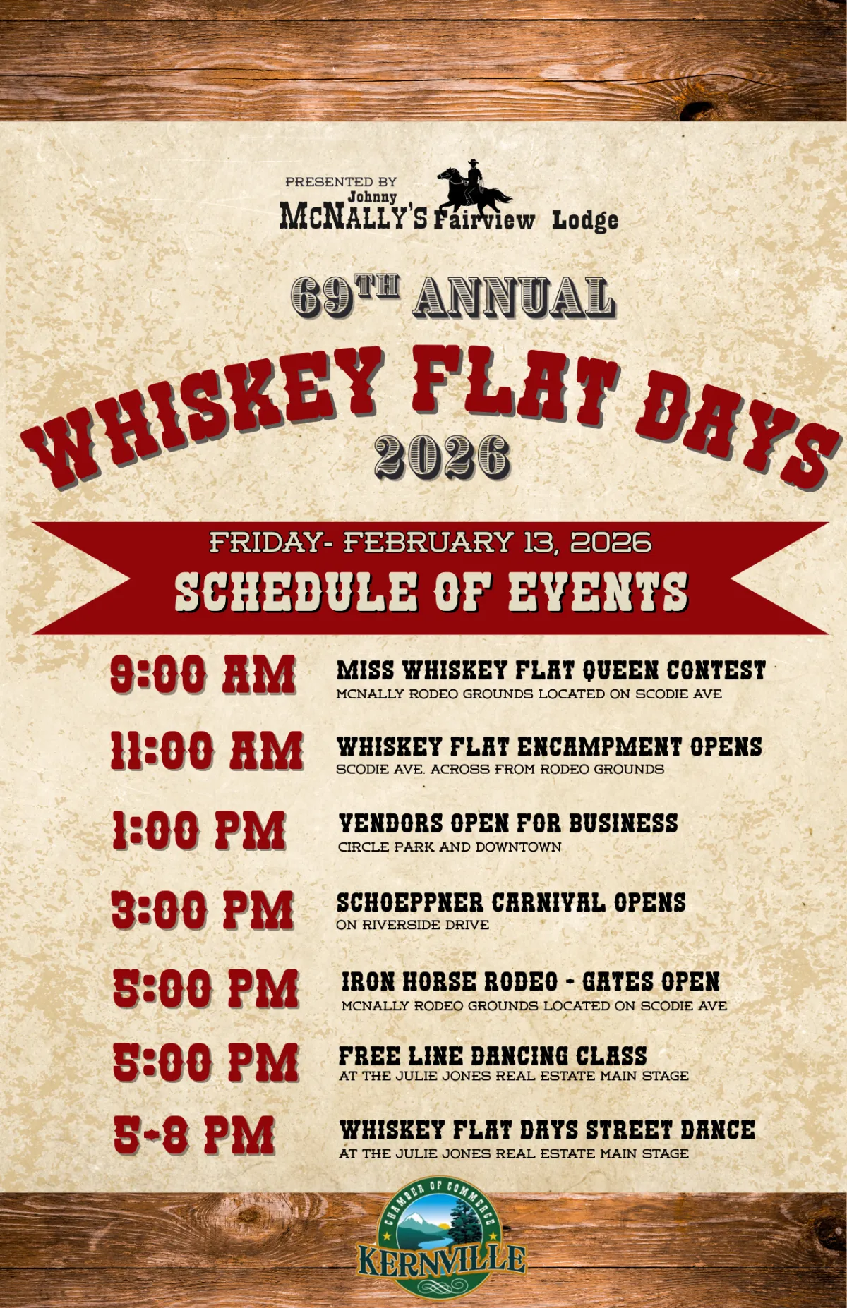From the Wild West Daze Rodeo and Iron Horse thrills to the Whiskey Flat Encampment and Kick Off Dinner, Whiskey Flat Days is jam-packed with excitement. Don’t miss the Calcutta, contests, carnival rides, vendors, live entertainment, and of course the grand parade—bringing the spirit of the Old West to life for the whole family.